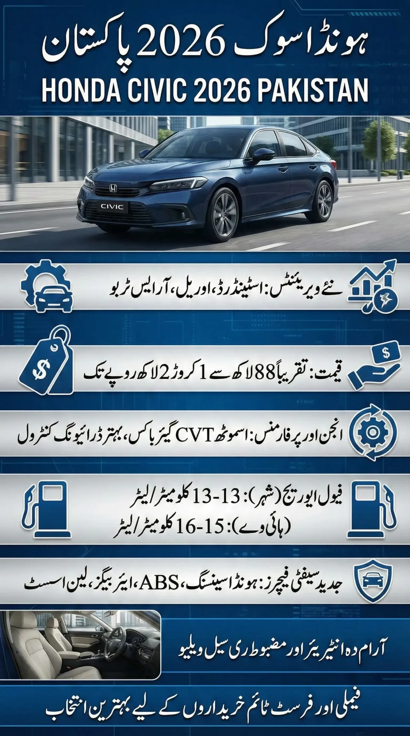 For city users, professionals, and families who want a reliable, premium sedan, the Honda Civic 2026 still holds its crown in Pakistan.