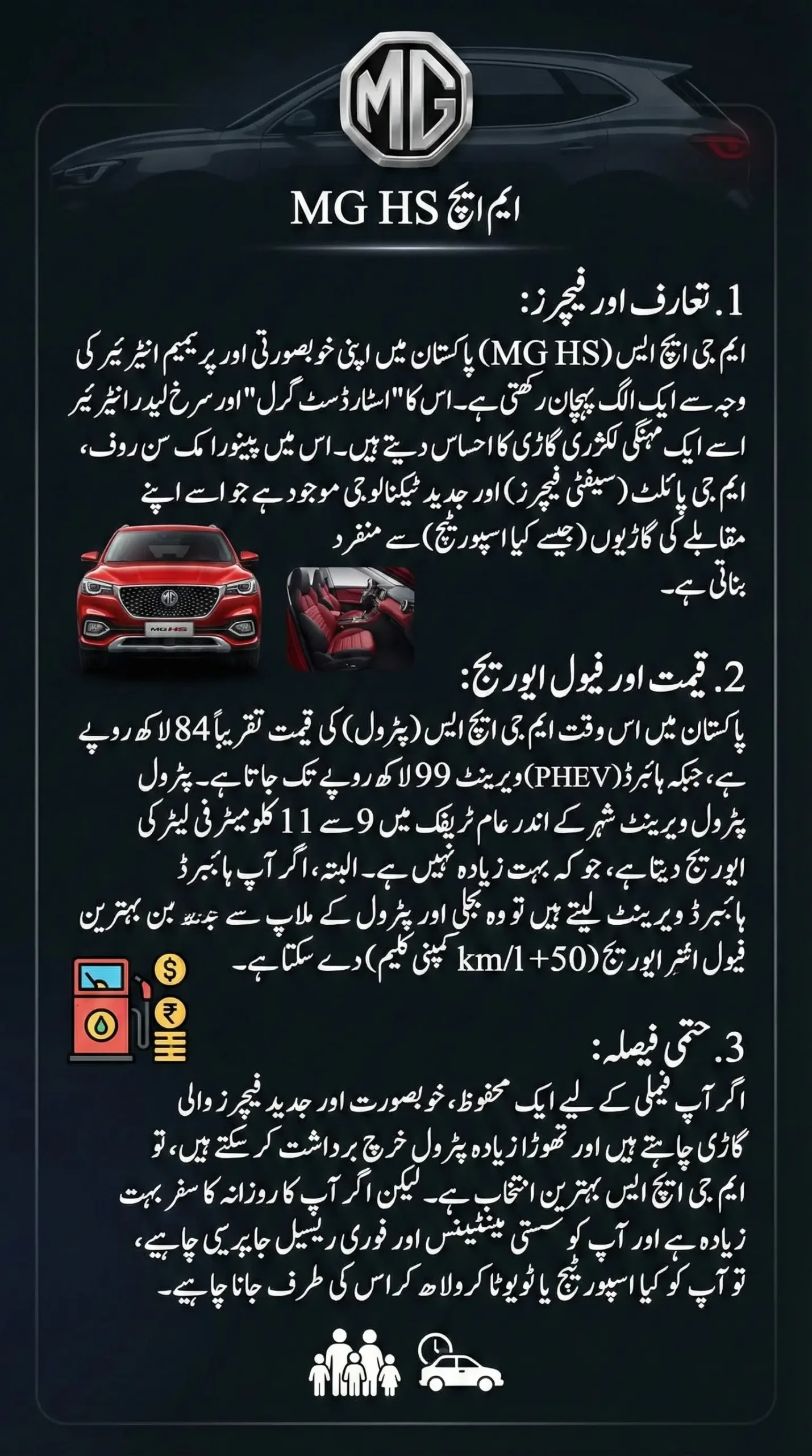 With petrol around PKR 300+ per liter, MG HS is not for fuel-average lovers. Itโs for comfort lovers.