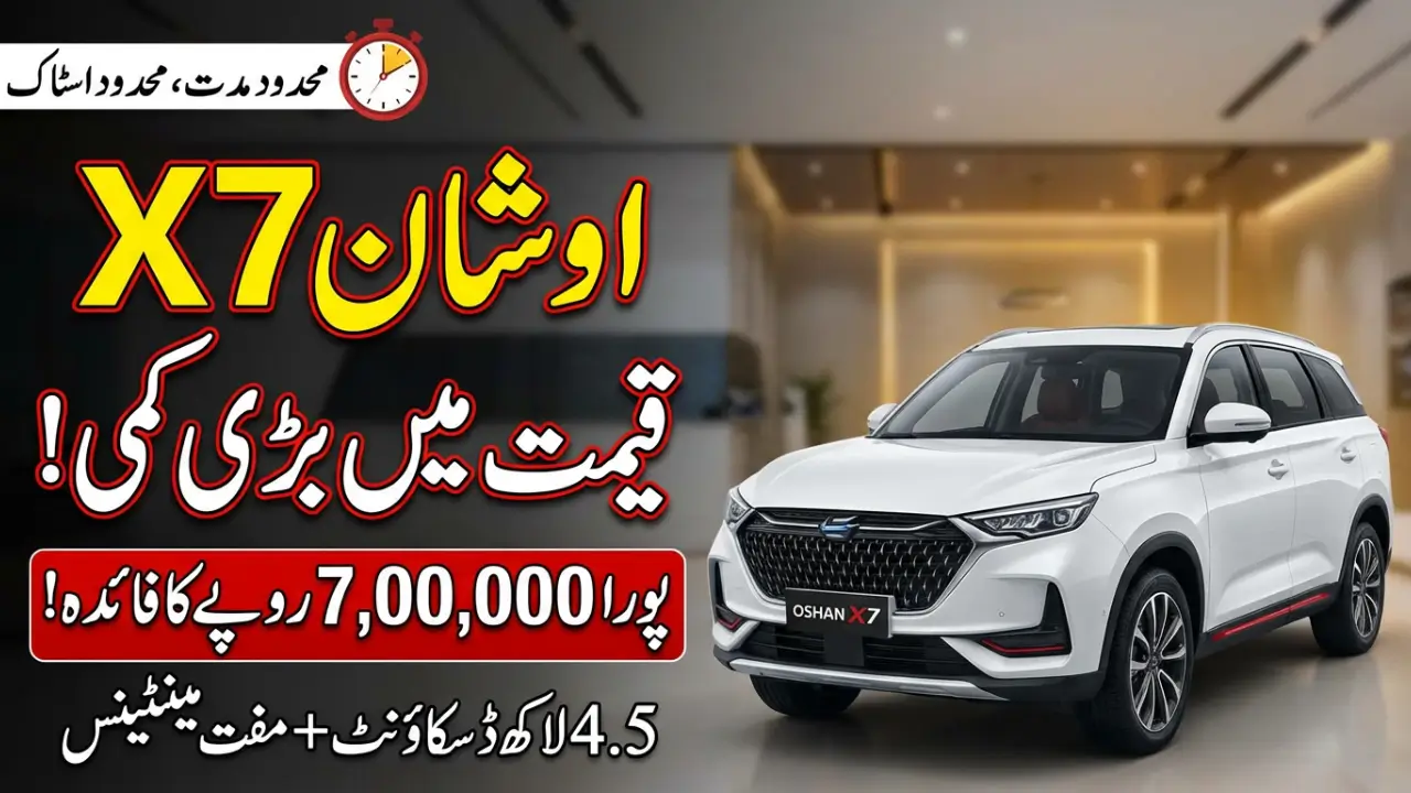 Oshan X7 Massive Price Drop For Limited Time In Pakistan brings real relief for SUV buyers. Changan Pakistan has reduced the ex-factory price of the Oshan X7 FutureSense 5-seater from Rs. 9,149,000 to Rs. 8,699,000, giving a direct discount of Rs. 450,000.