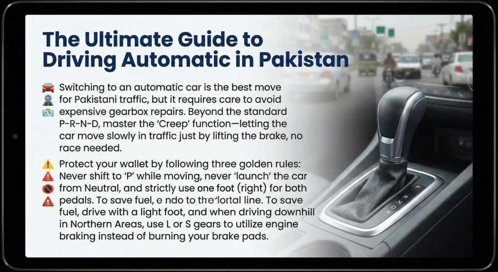 Tired of the clutch-brake grind in Pakistani traffic? Switching to an automatic car is a game-changer, but only if you drive it right. This guide moves beyond the basics of P-R-N-D to reveal pro tips that save your gearbox and fuel.